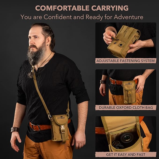 - INCLUDES SET OF ACCESSORIES: Unlike most monoculars for adults high powered telescopes for stargazing or bird watching, Scotar gives you a great bang for your buck. Meaning besides the high-definition pocket telescope, you get a thoughtfully designed pouch, smartphone adapter, and mini tripod that is sure to make your exploring, hunting, or fishing more exciting and fruitful