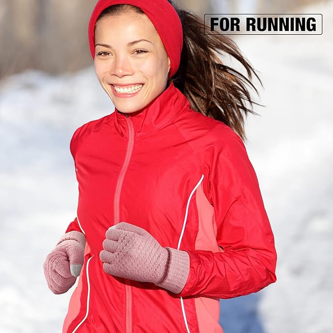 Geyoga 2 Pairs Women's Winter Touch Screen Gloves Soft Warm Fleece Lined Knit Elastic Cuff Winter Texting Gloves