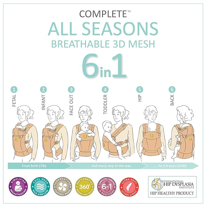 - Six Positions: The LÍLLÉbaby Complete baby carrier features 6 ergonomic carry styles for 360-degree babywearing including front, backpack and hip styles.