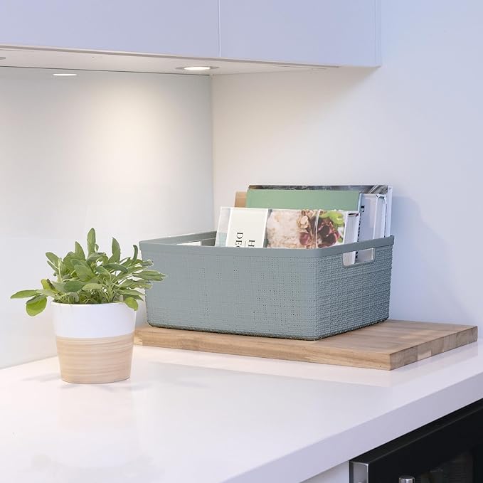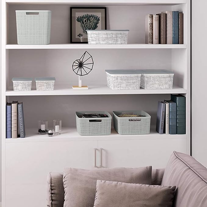 Curver Jute Decorative Plastic Organization and Storage Basket Perfect Bins for Home Office, Closet Shelves, Kitchen Pantry and All Bedroom Essentials, (Set of 6), Grey, Medium