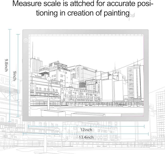 - Ultra Thin and Portable - Thickness 8mm; Work Surface 12 by 9 Inches, fit on A4 size sheet; Weight 0.55kg. Accurate Positioning - Measure scale is attached, benefiting the accurate positioning in drawing creation.