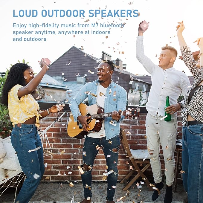 - 🌙【Bluetooth 5.0 & Wireless Stereo Pairing】: A new generation of Bluetooth 5.0 technology, transmitted by A2DP technology, has lower power consumption than Bluetooth 4.2 but with faster transmission,stronger anti-interference ability and more stable signal without any delay. Two M7 Wireless Speakers can be paired for true wireless Bluetooth playback on the left and right channels of the two M7 Bluetooth speakers.