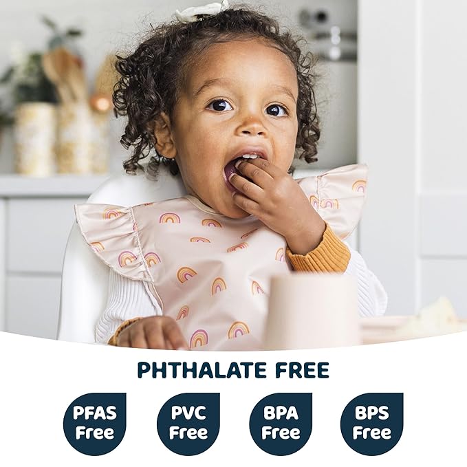 - EASY TO USE: Featuring a tug-proof closure that keeps the bib secure during baby-led weaning yet removes easily, our waterproof bibs won’t snag hair or irritate skin. Perfect for toddlers 1-3 years and messy eaters, the hassle-free design lets you focus on feeding fun instead of scrubbing food stains!