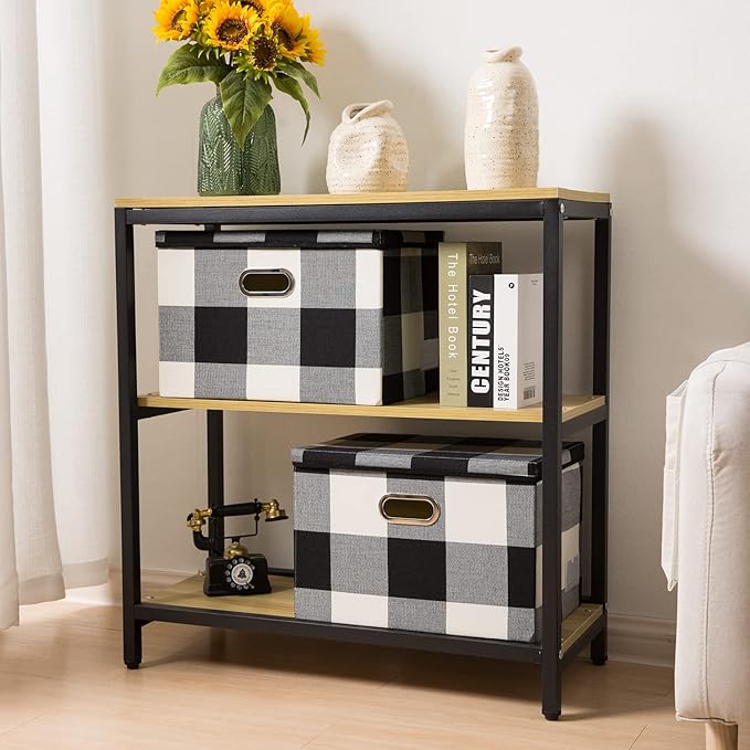 PRANDOM Large Collapsible Storage Bins with Lids [3-Pack] Fabric Foldable Storage Boxes Organizer Containers Baskets Cube with Cover for Home Bedroom Closet Office Black and White (17.7x11.8x11.8)