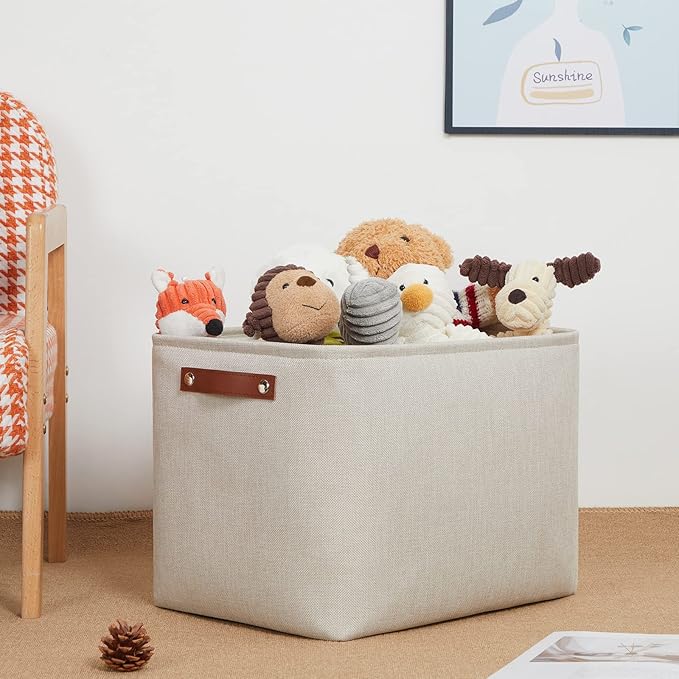 - 👏【Home Organizing Sollutions】--- These organizing storage bins with fun, trendy and adorable styles and colors can meet many storage needs. Linen, Home organization Baskets bring you organizing convenience and a sweet home. The fabric baskets with neutral colors can match a lot of home styles - keeping your home nice and tidy.