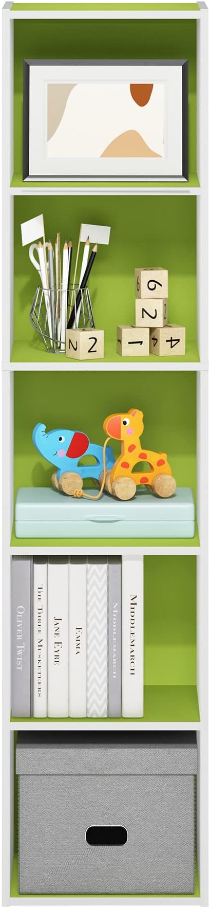 Furinno Luder Bookcase / Book / Storage, 5-Tier Cube, Green/White
