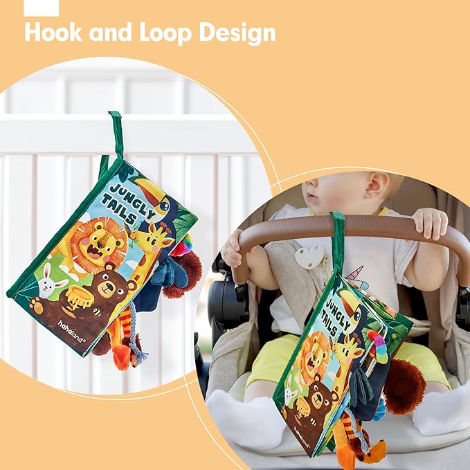 - All for Baby's Safe: The Jungly Tails baby book is made from BPA-free cloth and is soft to touch and chew, easy to use by baby without getting hurt, especially suitable for 0-12 months babies. No small or loose parts to avoid choking hazards and the stitching is strong enough to withstand chewing. Features soft, light and easy to clean so that can be carried anywhere and the colors and graphics do not easily fade and can be maintained with just a quick wash