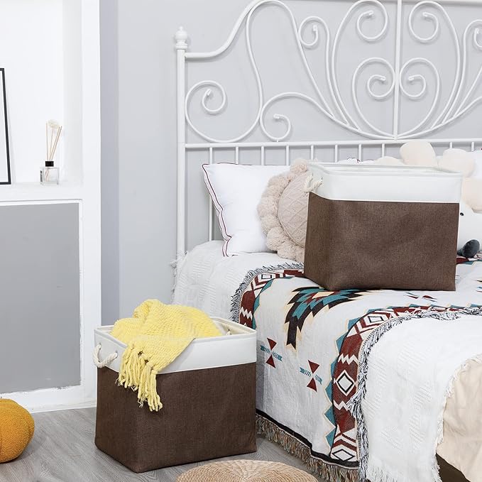 Bidtakay Baskets for Organizing Set of 2 Extra Large Fabric Storage Bins 17x12x15 in Collapsible Laundry Baskets Blanket Basket with Soft Handles Rustic Decorative Stair Basket Dog Toy Bins