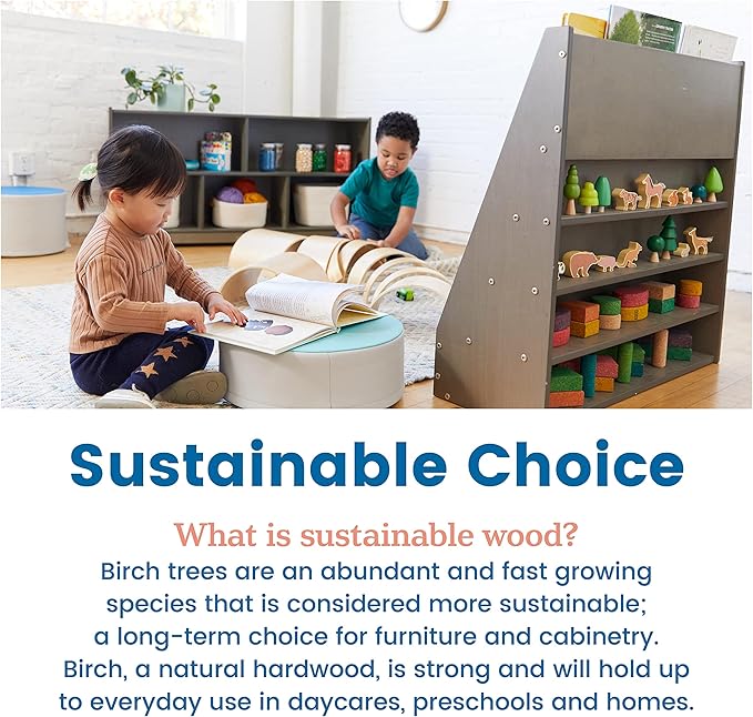 - Early Reading: The forward-facing bookcase is just the right size to let children see the cover of each book, prompting them to pick up a story and read; shelves on the back provide additional storage