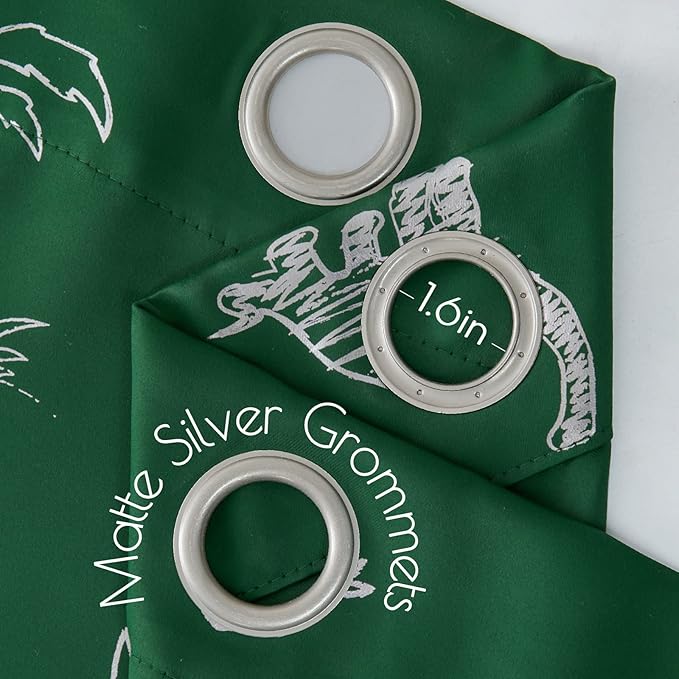 - Dinosaur Foil Printed Curtains: With these two panels 52" wide x 63" long of cute Dino Foil Printed Curtains that will add charm and whimsy to your little ones' room, guest room, or any space that needs a touch of magic