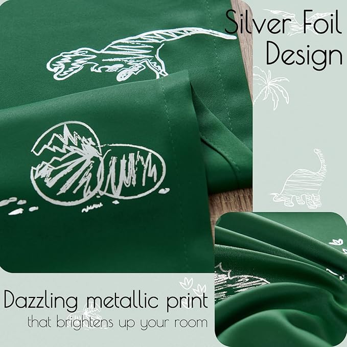 Vangao Kids Curtains Green Blackout Dinosaur Curtains for Boys Kids Nursery Girls Room Silver Dino Foil Print Thermal Insulated Drapes Grommet Top Window Treatments 84 Inches Length 2 Panels