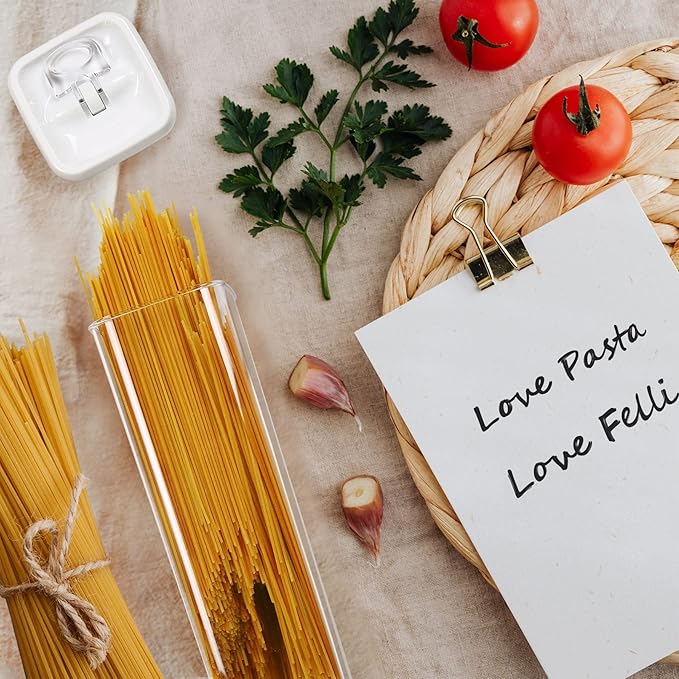 - 3 PIECES TALL SPAGHETTI CONTAINER โ ITALIAN PASTA SET : Set includes 3pc 4 inch width REGULAR-Tall sized containers ( 2.0 quart), each size is perfectly calibrated to store common household staples including long noodles, spaghetti, fettuccine, linguine, lasagna, macaroni, farfalle, fusilli, also great for pantry, kitchen counter, makeup, bathroom, office supplies organization, or craft storage.