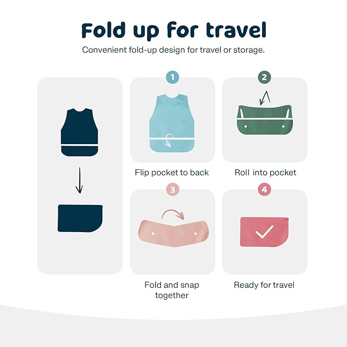 - TRAVEL MUST HAVES: Our baby feeding bib is the ultimate daycare and travel essentials for you and your little one. Soft, machine-washable, and waterproof, our bibs have a no-scratch closure that's gentle on your child while protecting clothes,,floors,high chairs, and tables from messy meals. Bring your baby anywhere with confidence – perfect for baby-led weaning and on-the-go toddlers!