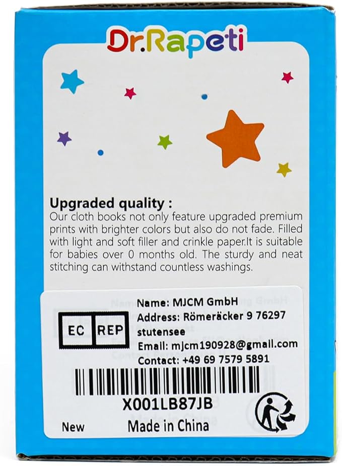 - Baby’s Favourite: Dr.Rapeti baby books are filled with light and soft filler, built-in squeaker button and crinkle paper, which can make squeaky and rustling sound to catch baby’s attention. It will arouse baby’s early touching and feeling sensory