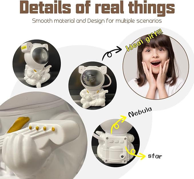 - [Multifunctional use] Astronaut Nebula Projector brings a vast and romantic starry night. Star lights can be used as brightness adjustable night lights, bedroom atmosphere lights, living room sofa table decoration lights, car atmosphere lights, game room decoration lights, small home theater strobe lights, study desks and computer desk decorations,room decor aesthetic,galaxy projector,moon lamp,lights for room decor,night light for kid,sky lite galaxy projector