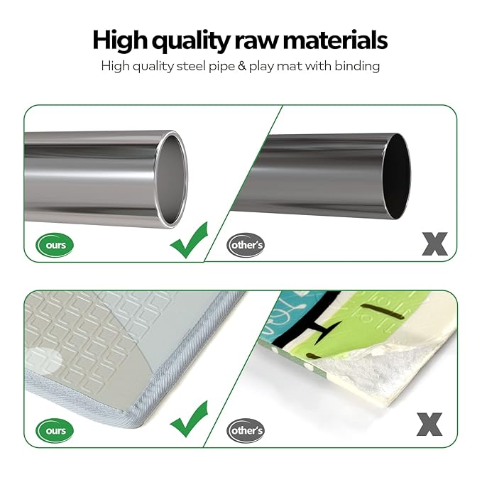 - Soft Playmat & Dual Protection: This playpen come with a 47x 47 inch foldable play mat. Giving your little one plenty of space to crawl, play, take a nap, or spend tummy time tummy time, crawling, learning to walk, especially for when babies fall down