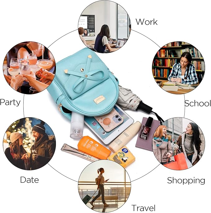• Cute Backpack for Teen Girls: it's a great gift for also girls and women. Mini size and bowknot decor make you look chic and fashion.