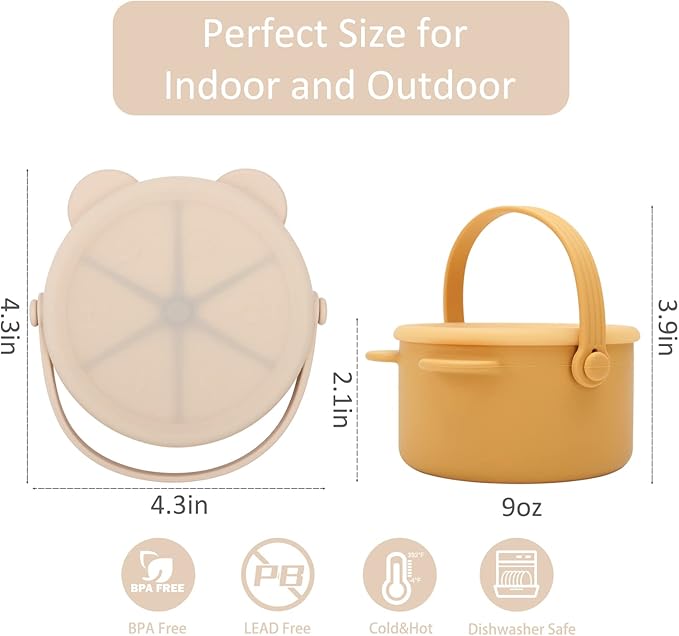 - 👶A wonderful Present: The silicone snack cups are not only great at home, but it also fits easily into your bag - you will get plenty of use from it as it can easily grow with your child through toddlerhood and pre-school age. Additionally, it makes an excellent gift for baby showers and new parents.