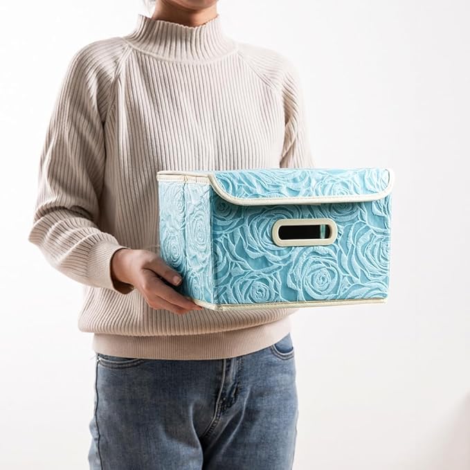 - 【Fashionable Bins】Designed to match interior decor and style in any room in the home or office. Enjoy the relaxing ambiance of the soft blue and natural white color scheme.