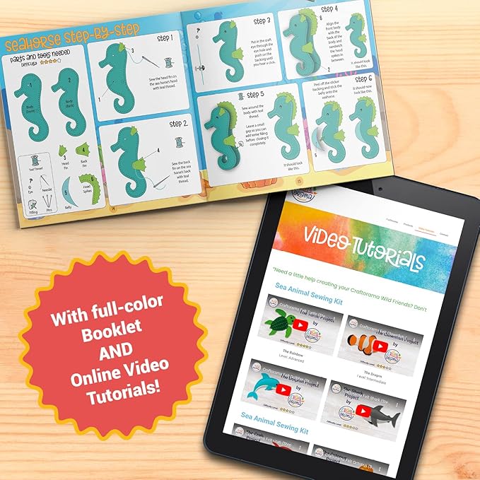 Craftorama Sewing Kit for Kids, Fun and Educational Sea Animal Craft Set for Boys and Girls Age 7-12, Sew Your Own Felt Animals Craft Kit for Beginners, 165 Piece Set