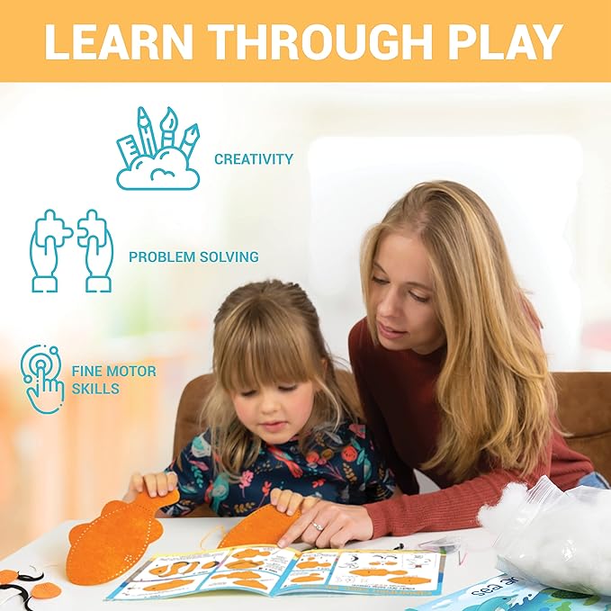- π PERFECT FOR BEGINNERS: Because the holes are pre-punched, kids have a clear guide to help make neat and even stitches. If you feel your kids are not quite ready for metal needles we have also included plastic needles so they can practice safely. While other kits come with a glue bottle to attach the smaller parts, which can leak and often doesn't stick well, our kit comes with premium 3M sticker backings. Just peel off the protective layer, and stick it securely in place.