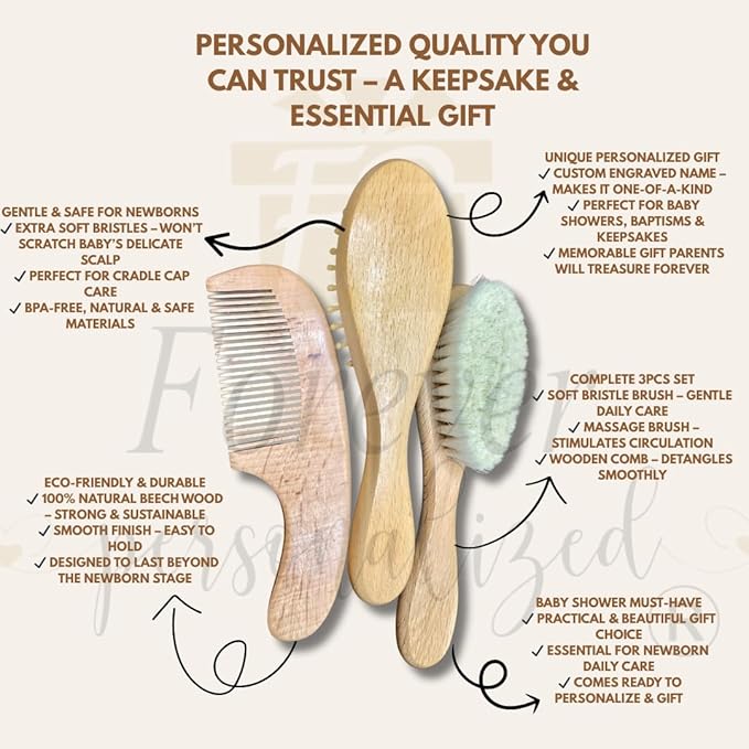 Custom Wooden Baby Brush Set | Personalized Wooden Baby Brush | Personalized Baby Gift Girls | Personalized Baby Gifts | Baby Brush and Comb Set | Custom Baby Gifts | Personalized Gifts