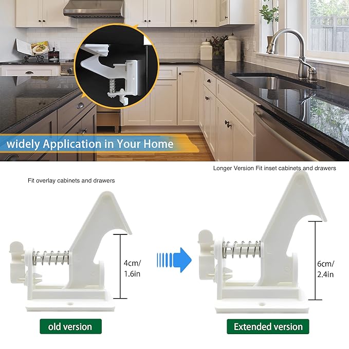 - 3.5 Inches Longer Cabinet Locks for Babies fit inset Cabinets and Drawers 10 Pack