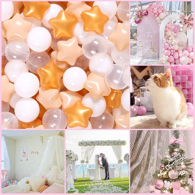- Color : 100pcs Pearl Gold+beige+white+clear Star Balls