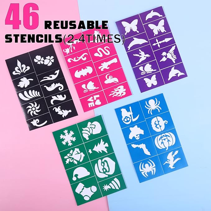 - 【Face & Body Paint Kit】Our face painting kit includes 16 bright colors and extra large black & white,2 glitters,3 brushes,5 face paint stencils,4 sponges,2 gem sheet,1 instructions.For everything you need to make a perfect look.