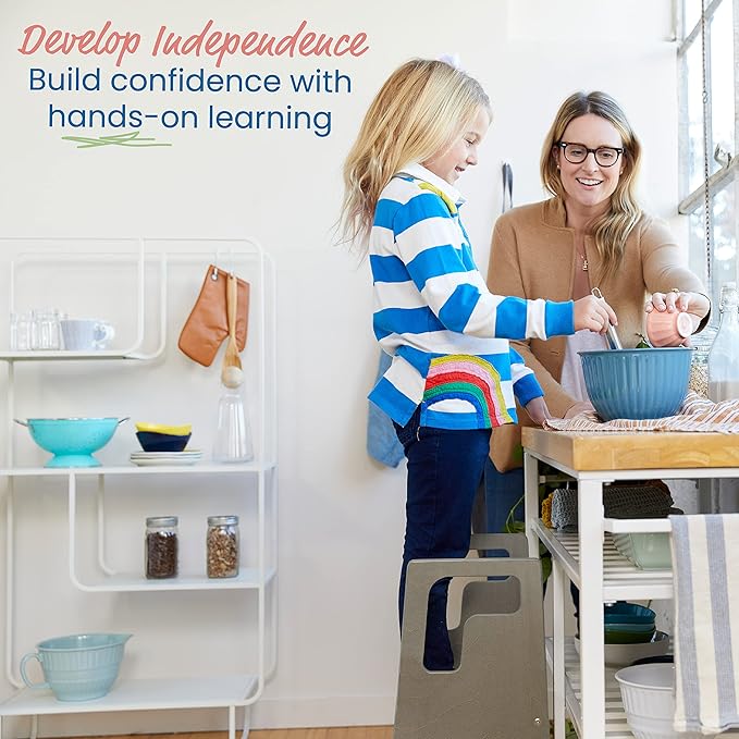 - Two-Step Stool: Countertop-height step stool designed for little helpers to grow confidence as they cook, wash hands, and brush teeth in a home, preschool, or daycare