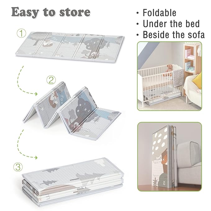 - Portable & Foldable: This baby play mat can taking on a trip for a nice soft area for kids to play; can be placed outdoor, back of van and place at multiple surfaces. This baby play mat is easy quick to fold up