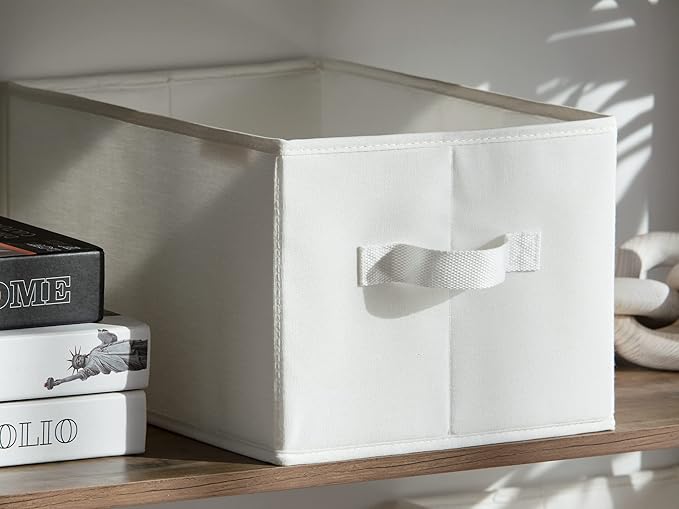 StorageWorks Storage Baskets for Shelves, Foldable Fabric Closet Storage Bins with Handles, Fabric Storage Bins Clothes Organizer, White, 3-Pack, Large