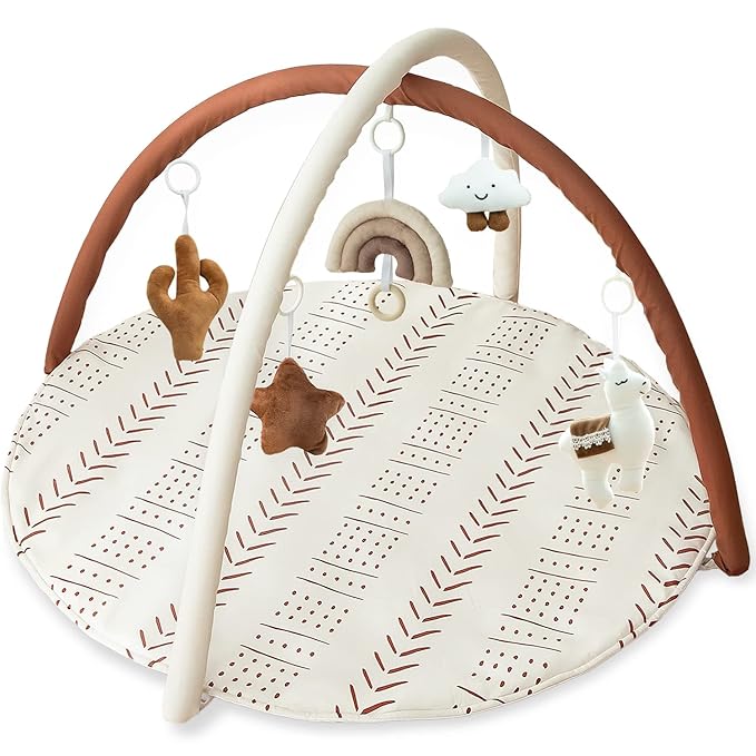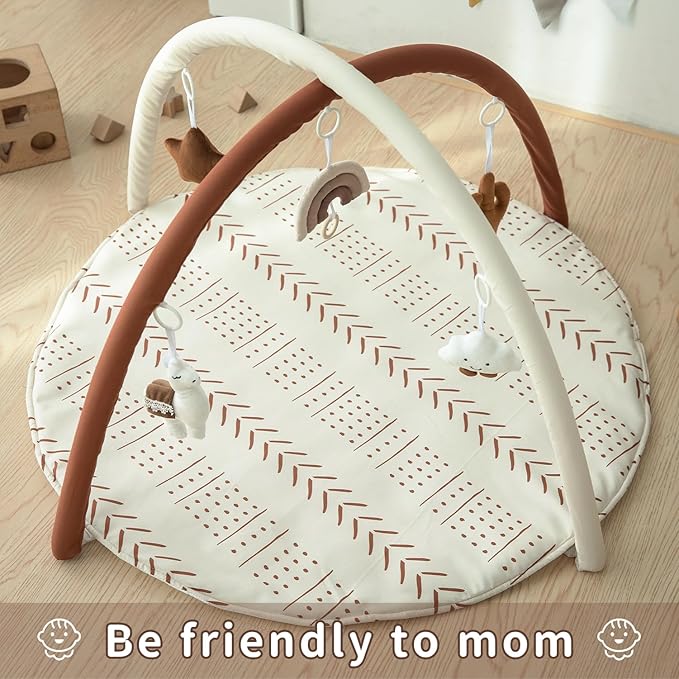 Razee Baby Gym Mat Infant Activity Gym Mudcloth Baby Activity Center with Play Mat with 5 Toys for Babies as Shower Use