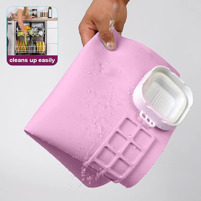 - [LARGE SILICONE MAT] - The size of the silicone artist mat with a water cup is 20×16 inches. The slightly raised edge keeps everything on the art mat.