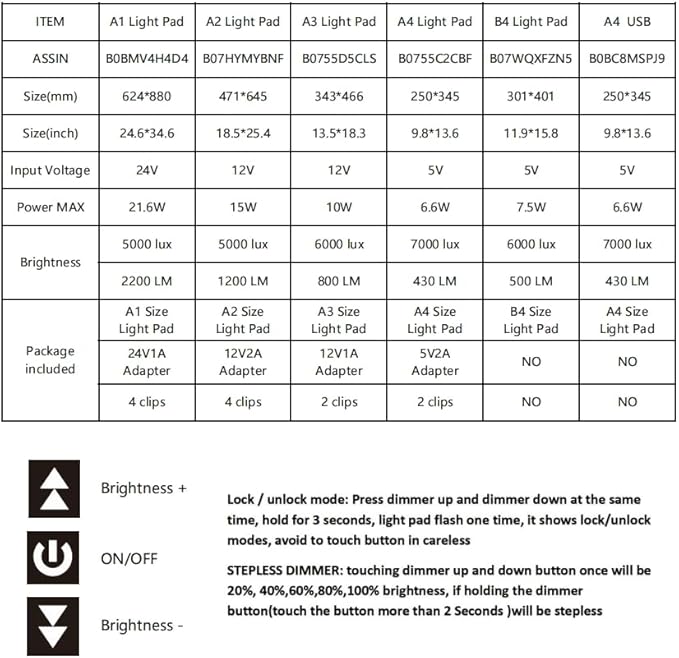 - Super thin 6.6mm A1 Artist Light Box Light Pad with Lock/Unlock Touch Dimmer Button, Max Bright led Light 5000 lux in the surface