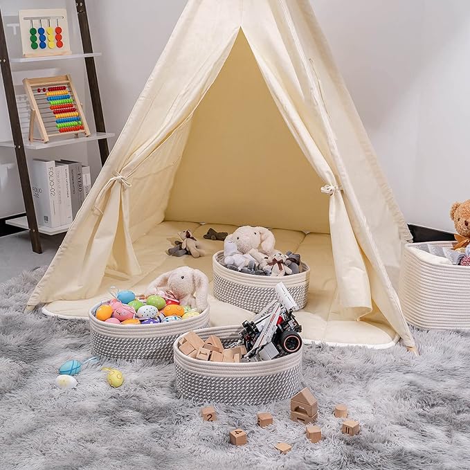 Shelf Storage Baskets for Organizing|Decorative Basket for Closet Storage|Toy Baskets&Bins|Small Woven Rope Baskets-13x8.66x5.11’’,Durable&Stylish,Oval 3 Packs Off White&Mixed Gray