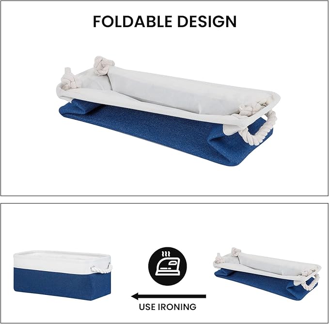 - Foldable design: Before you buy, we need you to know that our toilet paper basket are sent to you folded. Before you use bathroom basket, you can iron it first, the toilet paper basket will look better. You need to note that you should drag the storage basket with a towel when ironing to avoid burns. Because it is foldable design, all you may fold him up to save space when you don't need to use it.