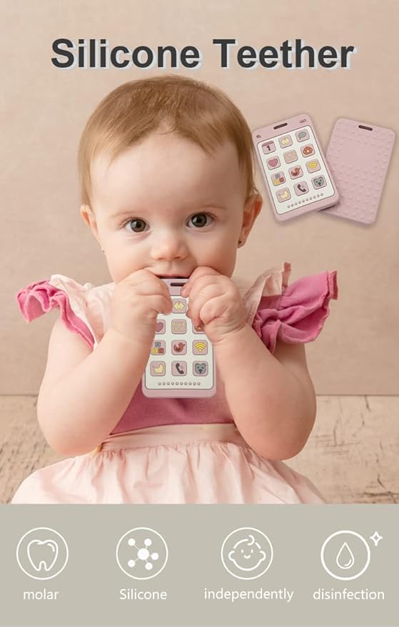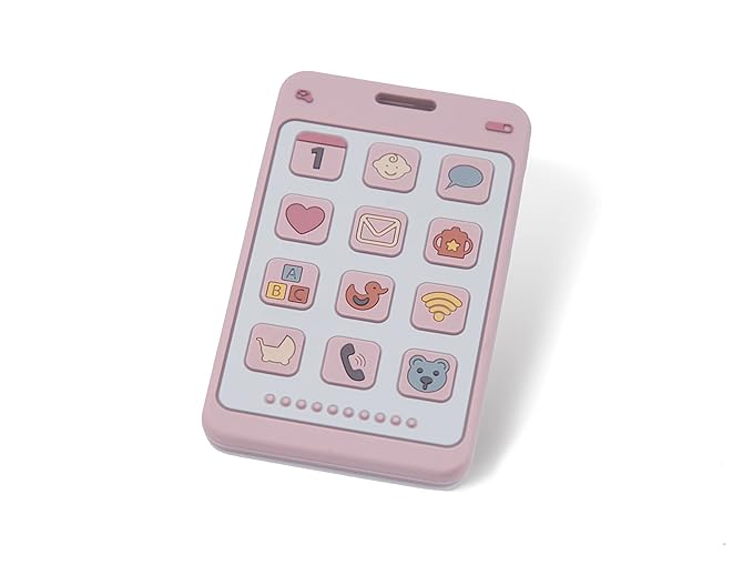 Soft Silicone Phone Shape Teether Boys Girls Baby Molar Teether Chew Toys, Teething Toy (Pink)