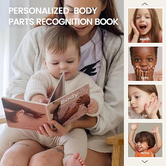 - Montessori Body Awareness Board Book & Expert Guide โ This set includes a Montessori-inspired body board book that helps babies recognize hands, feet, and facial features, supporting early language and self-awareness development. Plus, the included expert parenting guide provides practical tips and activities to enrich your babyโs learning journey