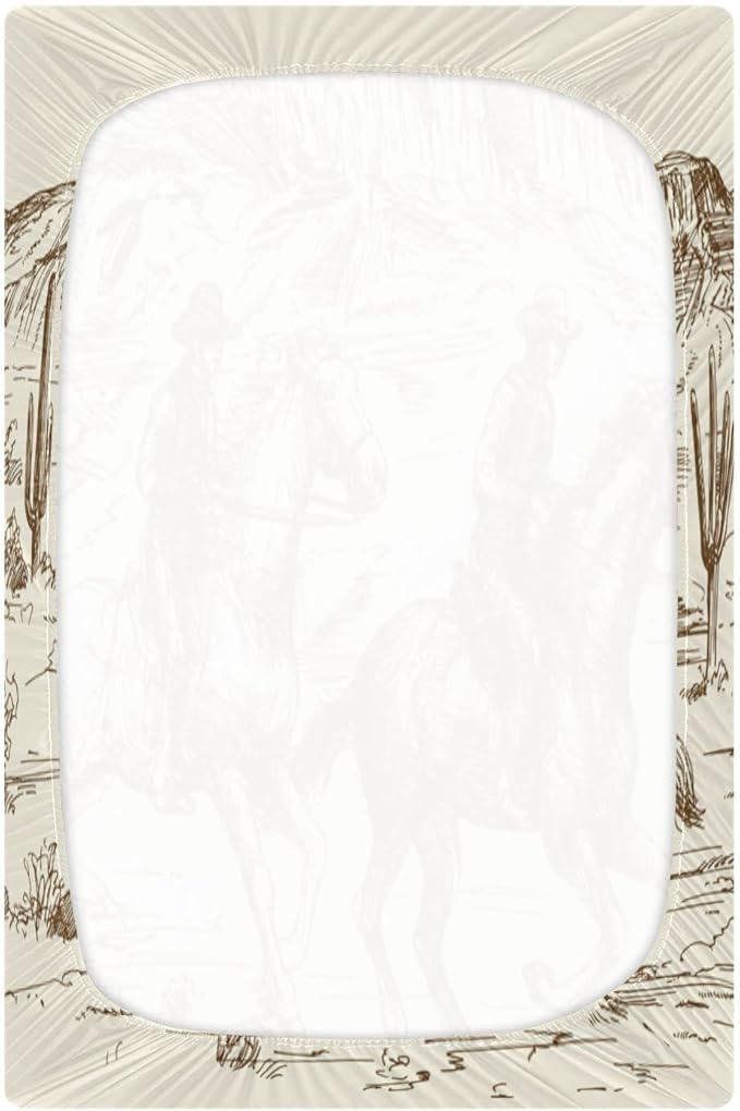 Western Desert Cowboy Crib Sheets for Boys and Girls, Fitted Baby Crib Sheets Soft and Breathable Mini Crib Sheets 52 X 28 Inches
