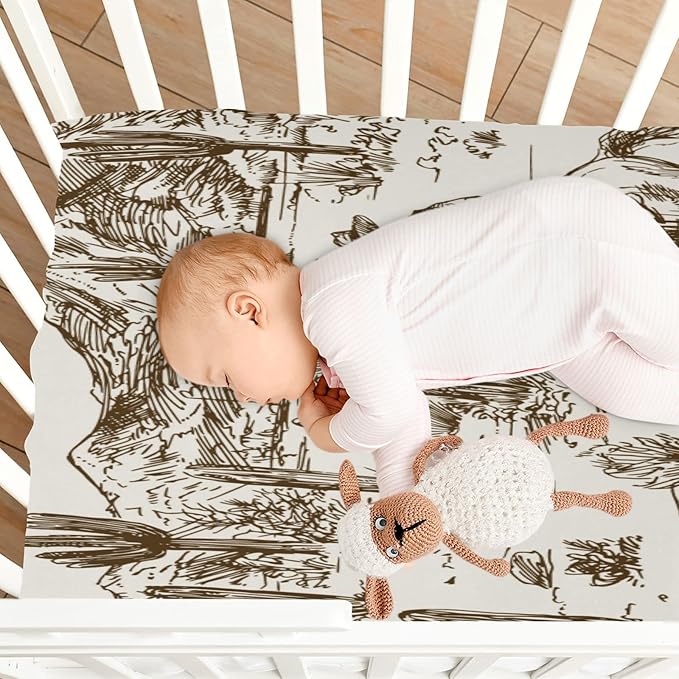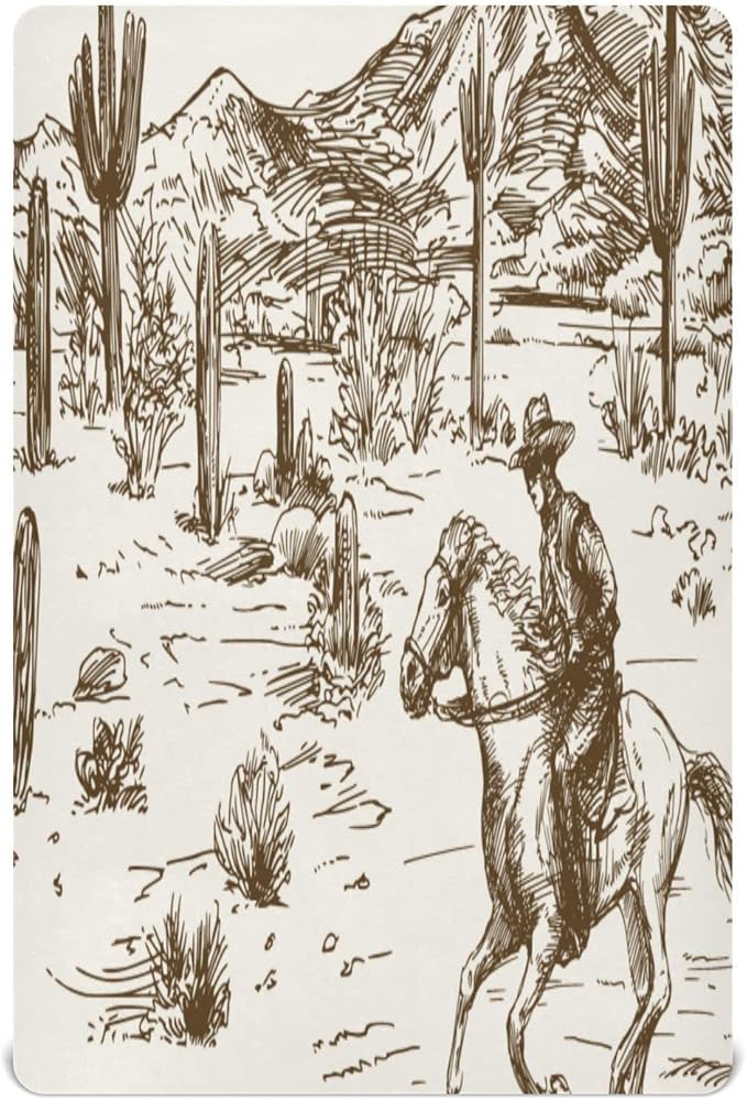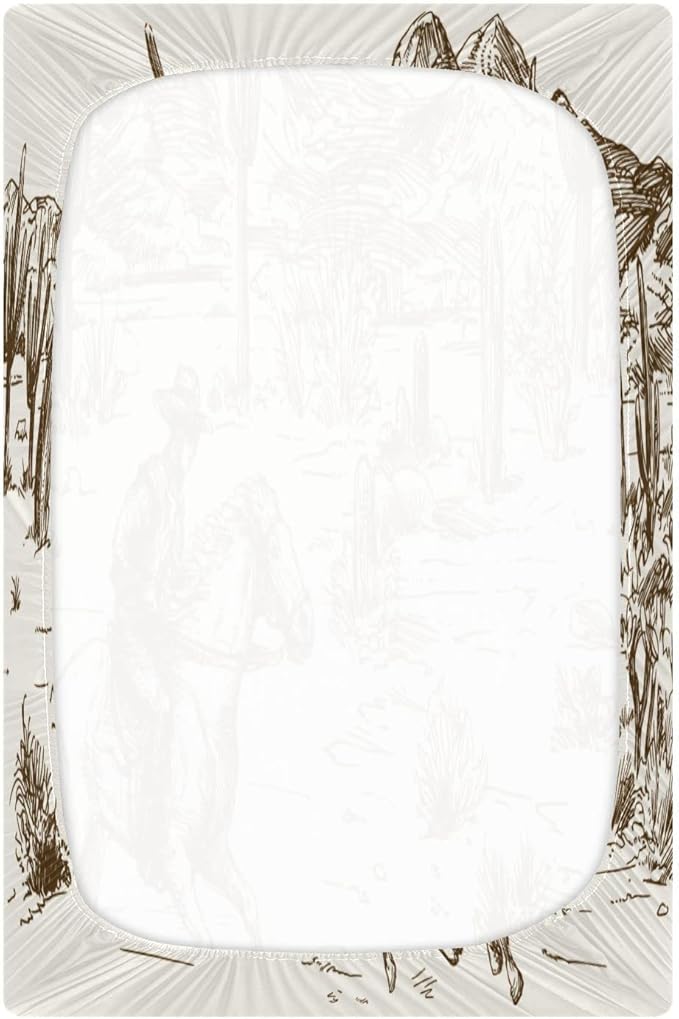 Western Desert Cowboy Crib Sheets for Boys and Girls, Fitted Baby Crib Sheets Soft and Breathable Mini Crib Sheets 52 X 28 X 9 Inches