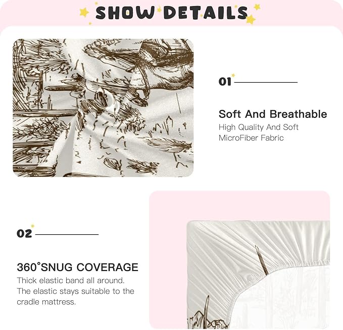- Excellent Quality -- The fabrics of these crib sheets are carefully selected to be soft, comfortable and breathable, skin-friendly. Made of 95% polyester + 5% spandex, these crib sheets are fade resistant, machine washable and easy to care for.