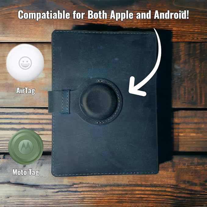 - ➡️ MADE FOR APPLE AIR TAGS AND MOTO TAGS: Our Genuine Leather Passport Holder features a built-in pocket that securely holds your Apple AirTag and Moto Tag trackers in place. Its design provides excellent signal strength for GPS tracking. PLEASE NOTE: THIS PRODUCT DOES NOT COME WITH AN APPLE AIRTAG OR MOTO TAG