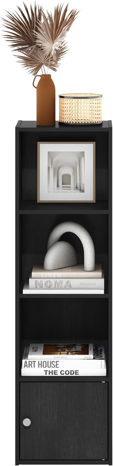 Furinno Luder Shelf Bookcase with 1 Door Storage Cabinet, Blackwood