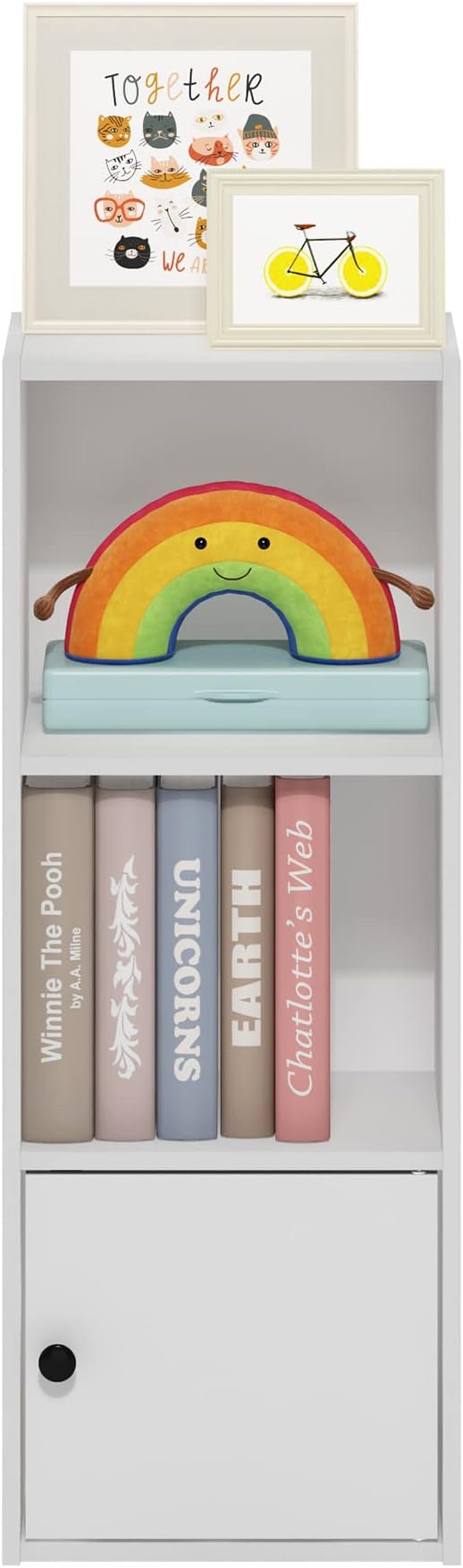 Furinno Luder Shelf Bookcase with 1 Door Storage Cabinet, White