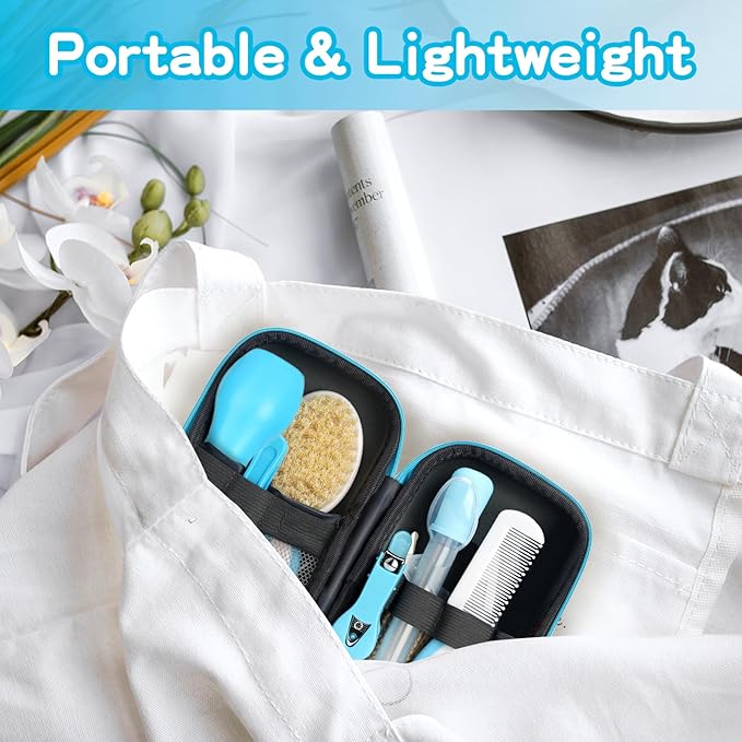 Baby Grooming Kit,Infant Safety Care Setwith Hair Brush Comb Nail Clipper Nasal Aspirator, Baby Essentials Kit for Newborn Girls Boys (14 PC-Blue Kit)