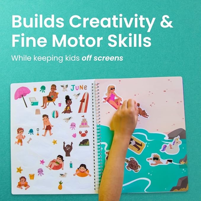 - 1st kids sticker book brand to use spiral binding to keep it flat on the table or in your kid’s small lap. Innovative sticker books for kids ages 4-8 makes an amazing kids travel activity
