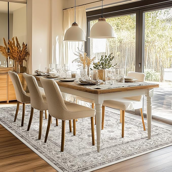 jinchan Floral 6x9 Area Rugs for Living Room - Machine Washable Vintage Distressed Boho Design Throw Rug Stain Resistant Carpet Low-Pile Thin Non-Slip for Bedroom Dining Room Nursery (6‘x9',Beige)