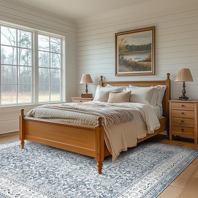 jinchan Floral 8x10 Area Rugs for Living Room - Machine Washable Vintage Distressed Boho Design Throw Rug Stain Resistant Carpet Low-Pile Thin Non-Slip for Bedroom Dining Room Nursery (8‘x10',Grey)
