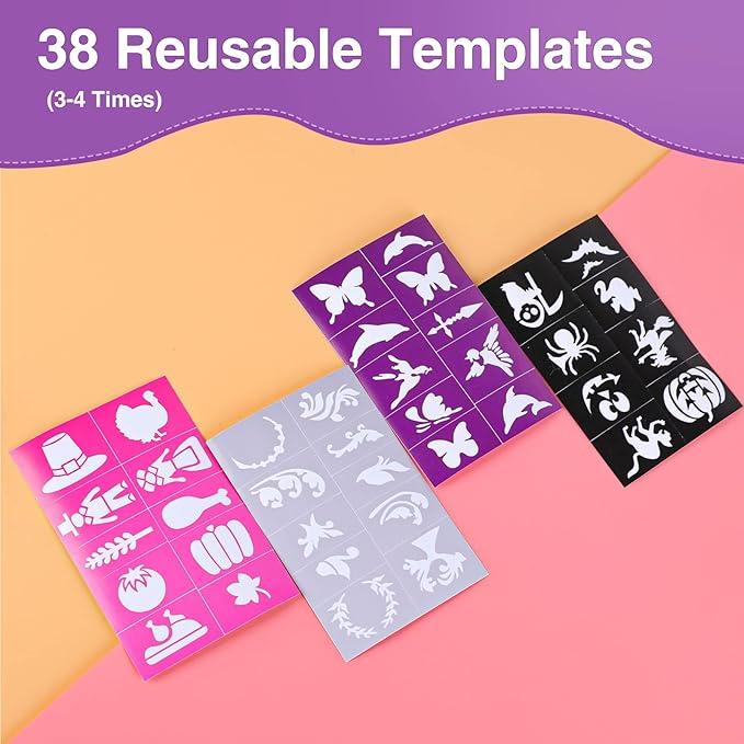 - Professional Face Painting Kit Included:The Halloween paint makeup package is suitable for kids and adult.it include 32 Face Paints with 20 classic,6 metal and 6 UV glow colors,10 Paint Brushes,38 stick stencils,2 sponges and 2 glitters.You can follow the instructions to use it.